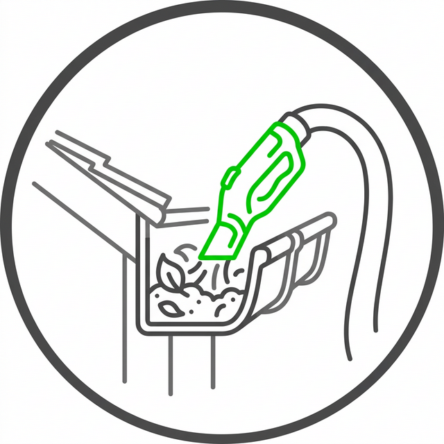 Professional gutter cleaning using high-reach vacuum systems to clear moss, leaves and debris before overflow causes water damage.